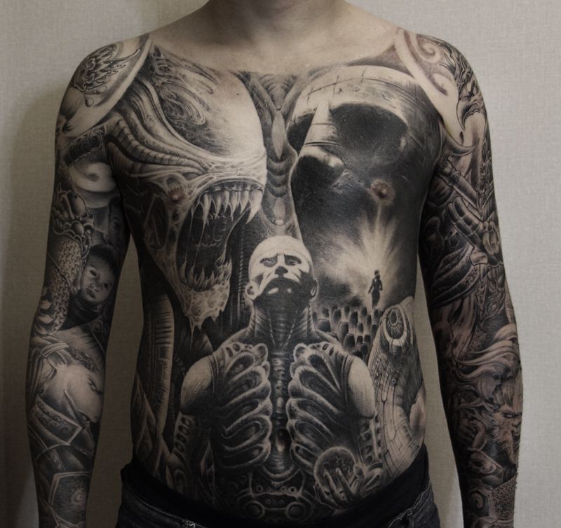 黑灰满背纹身图案