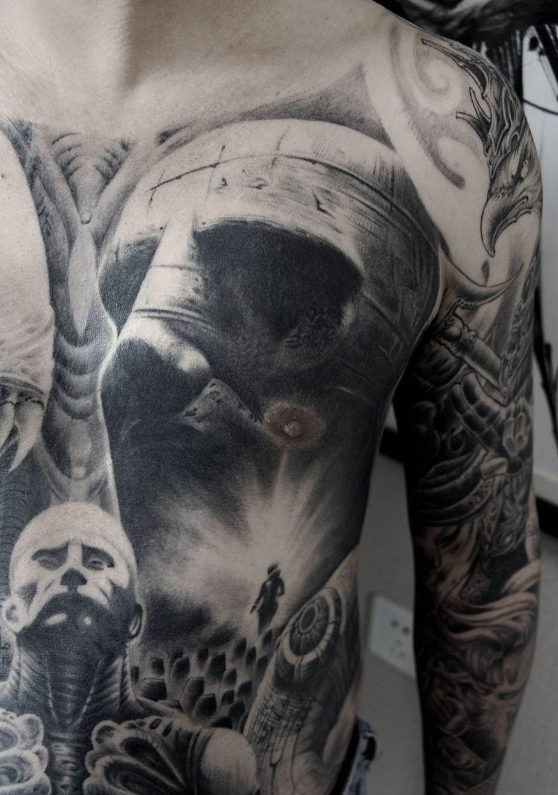当前位置: 首页 >山东省济南市纹身店-青松TATTOO纹身图案>《普罗米修斯》纹身图片_胸部腹部欧美写实纹身图案