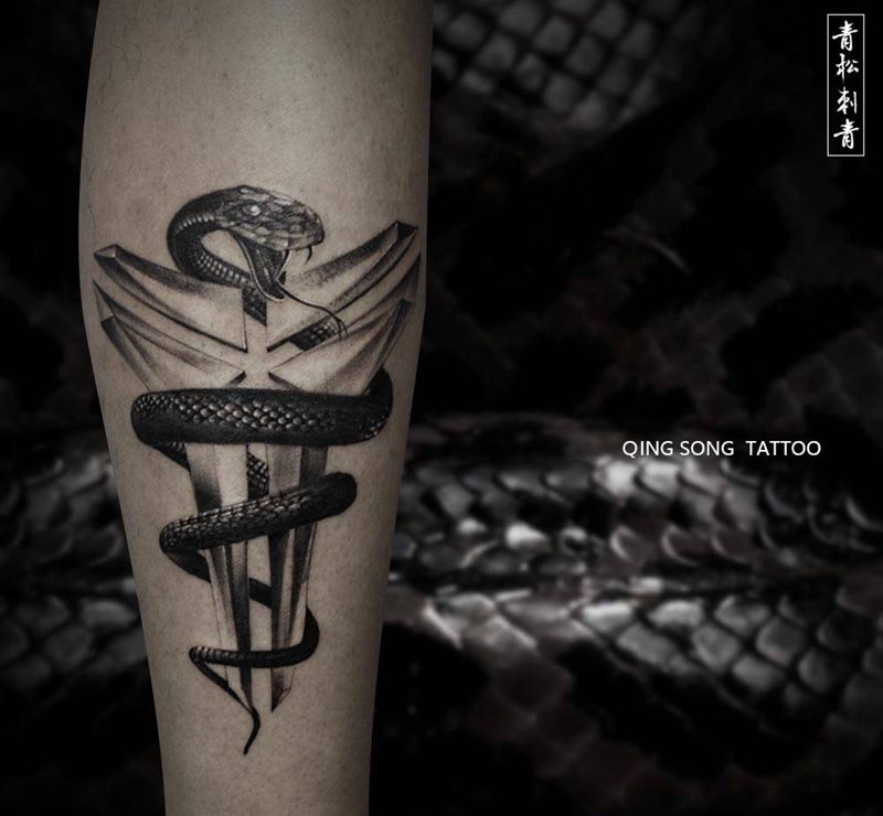 科比黑曼巴纹身图片_腿部欧美写实纹身图案