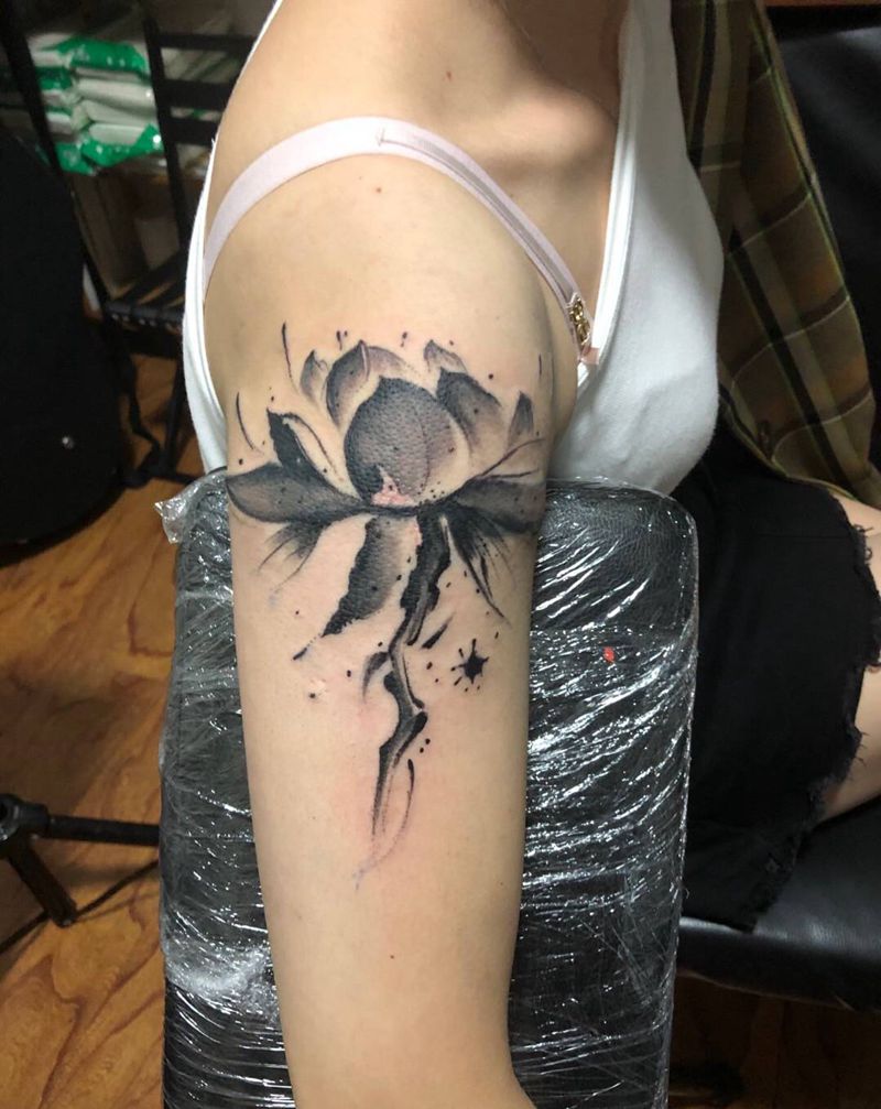 莲花纹身图片_手臂水墨莲花纹身图案
