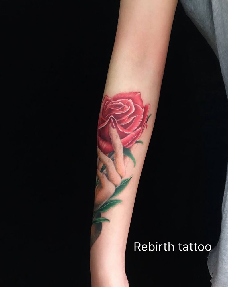 予人玫瑰手有余香纹身图片_手臂欧美写实纹身图案