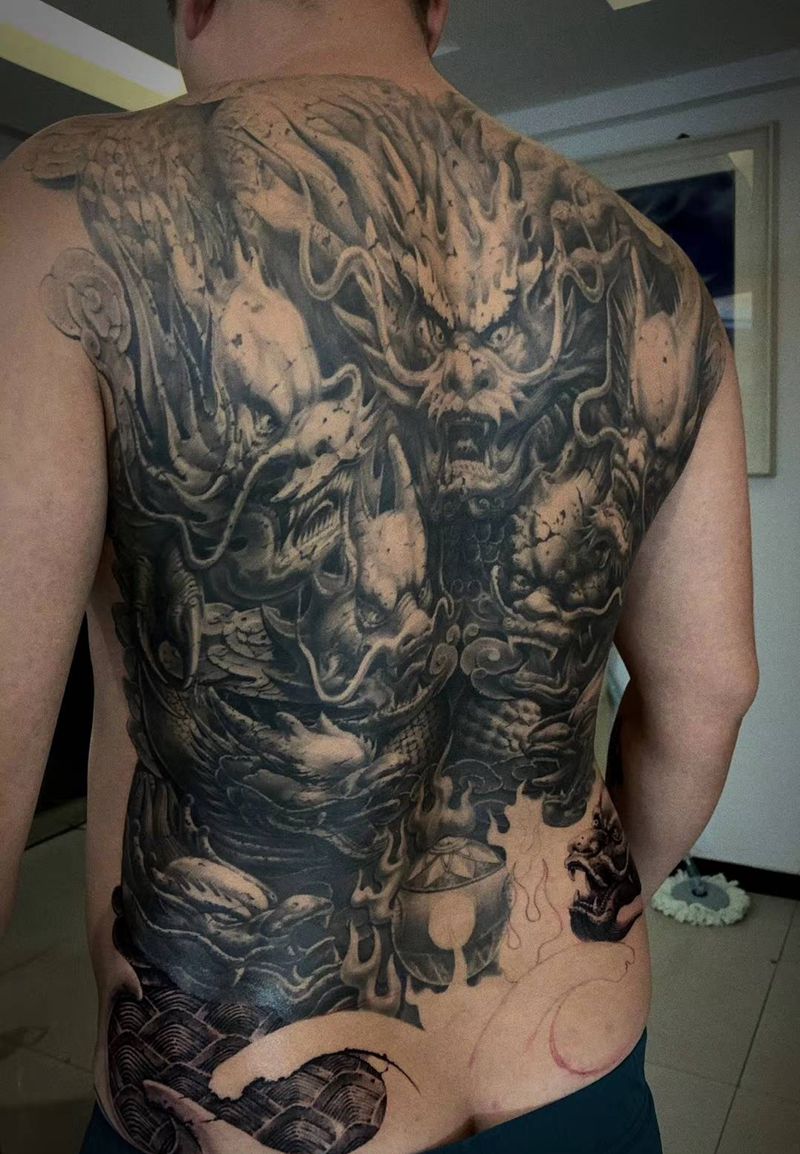 黑灰满背纹身图案