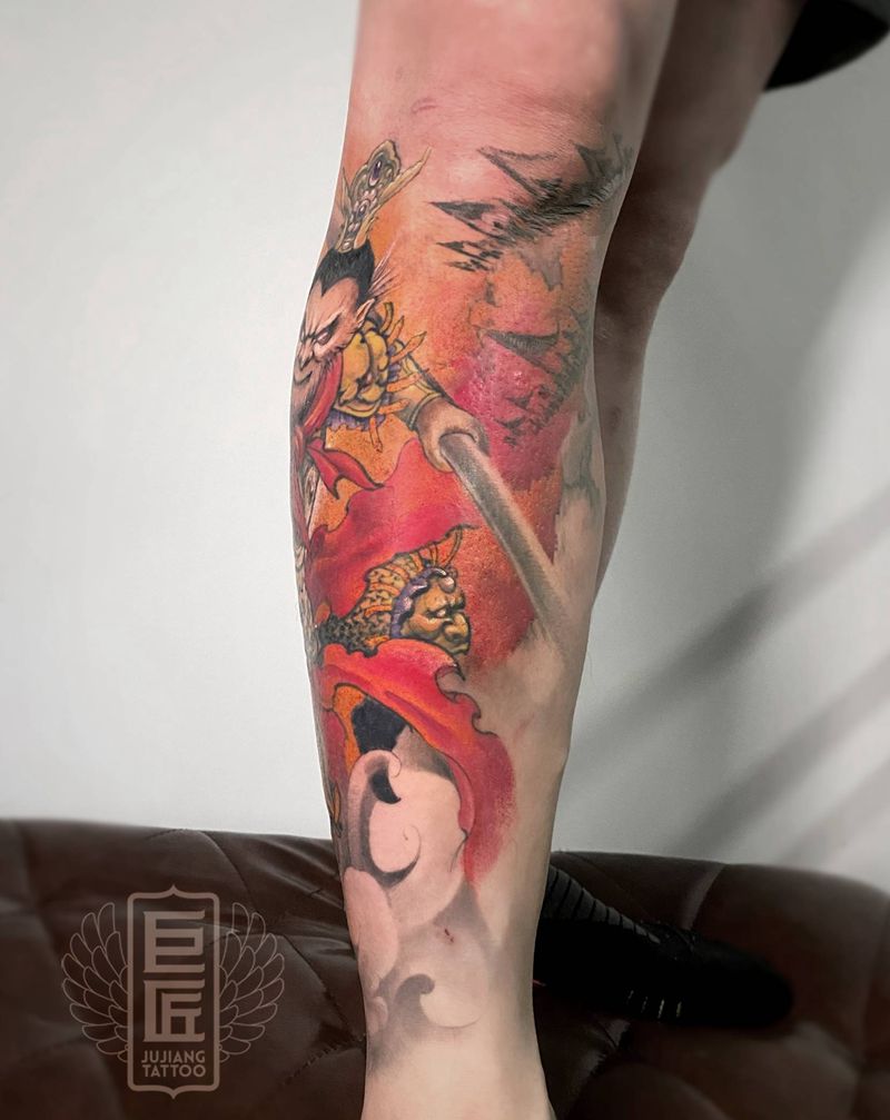 • T网红王老大花腿龙纹身图片_腿部新传统纹身图案