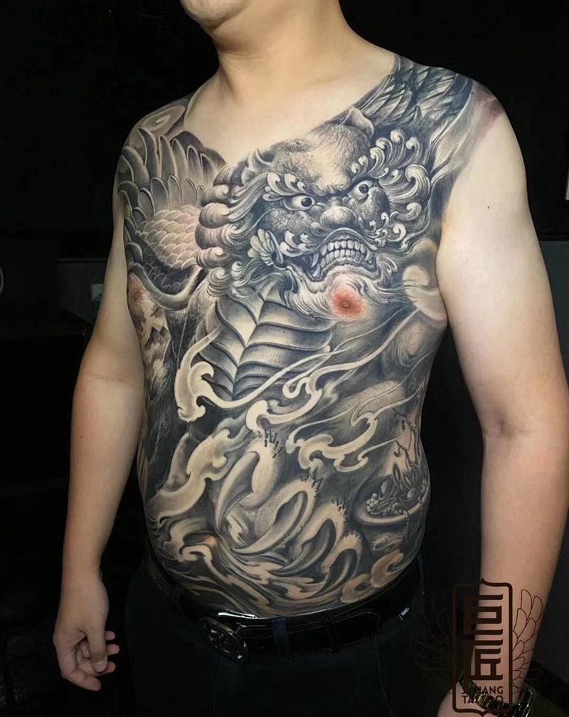 当前位置: 首页 >山东省济南市纹身店-济南巨匠刺青纹身图案>招财大貔貅纹身图片_胸部新传统貔貅纹身图案