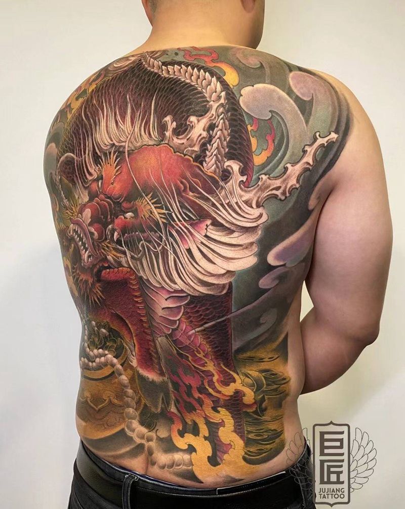 当前位置: 首页 >山东省济南市纹身店-济南巨匠刺青纹身图案>满背大麒麟纹身图片_背部新传统水彩麒麟纹身图案