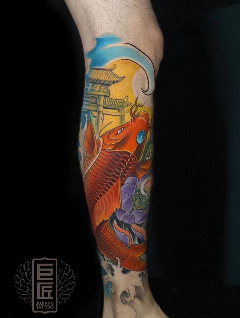 当前位置: 首页 >山东省济南市纹身店-济南巨匠刺青纹身图案>跃龙门纹身图片_腿部新传统纹身图案