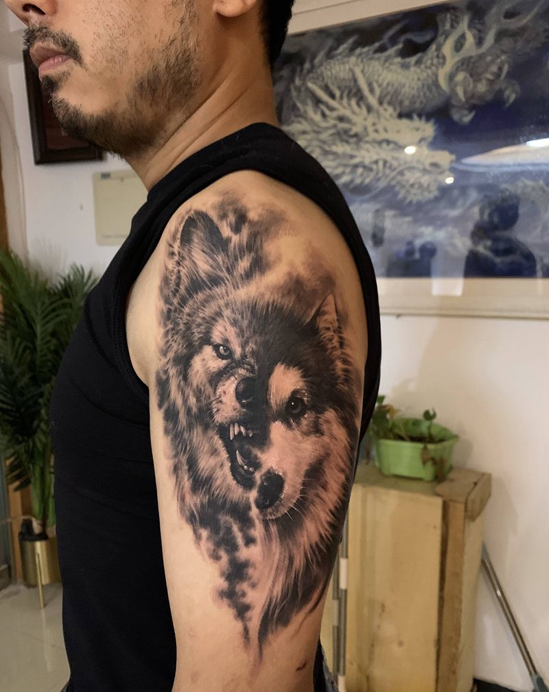 当前位置: 首页 >山东省济南市纹身店-济南纹彩刺青纹身图案>狼纹身图片_手臂欧美写实纹身图案