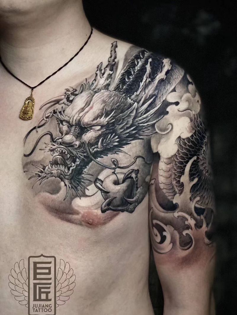 半甲纹身图片_肩部胸部新传统原创纹身图案