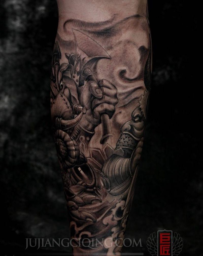 当前位置: 首页 >山东省济南市纹身店-济南巨匠刺青纹身图案>包小腿纹身图片_成品腿部传统动物原创纹身图案