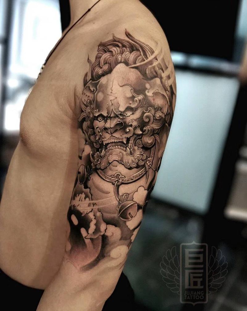 唐狮子纹身图片_手臂新传统纹身图案