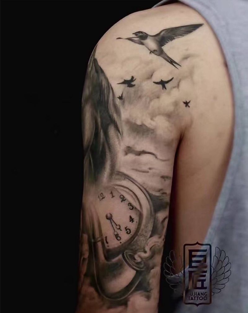 当前位置: 首页 >山东省济南市纹身店-济南巨匠刺青纹身图案>欧美风纹身图片_成品手臂欧美写实动物静物原创培训纹身图案