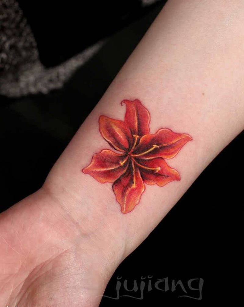 当前位置: 首页 >山东省济南市纹身店-济南巨匠刺青纹身图案>彩色花遮盖伤疤纹身图片_成品手臂腰部清新原创植物培训纹身图案