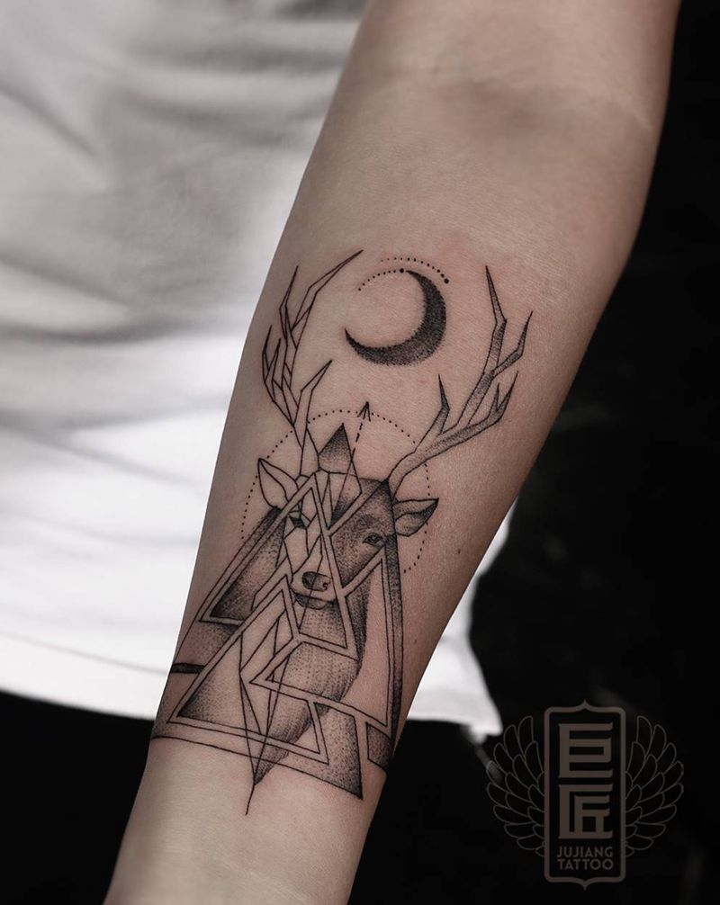 当前位置: 首页 >山东省济南市纹身店-济南巨匠刺青纹身图案>点刺鹿纹身图片_手臂点刺纹身图案