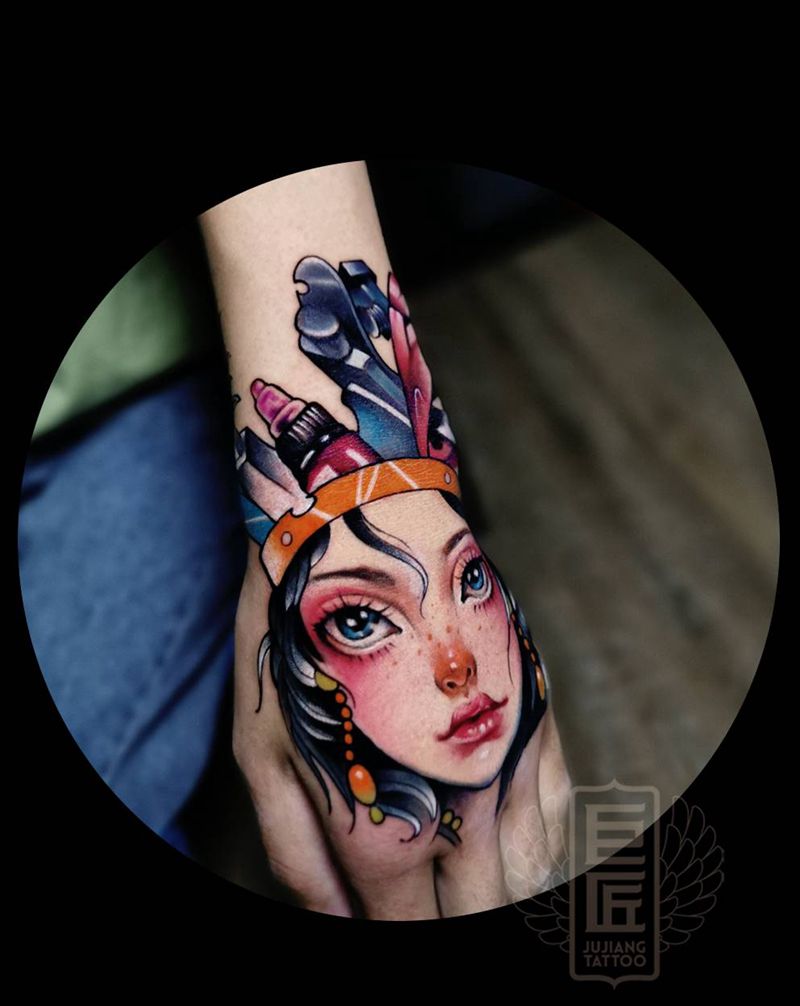 当前位置: 首页 >山东省济南市纹身店-济南巨匠刺青纹身图案>New school纹身图片_手臂手部New School水彩纹身图案
