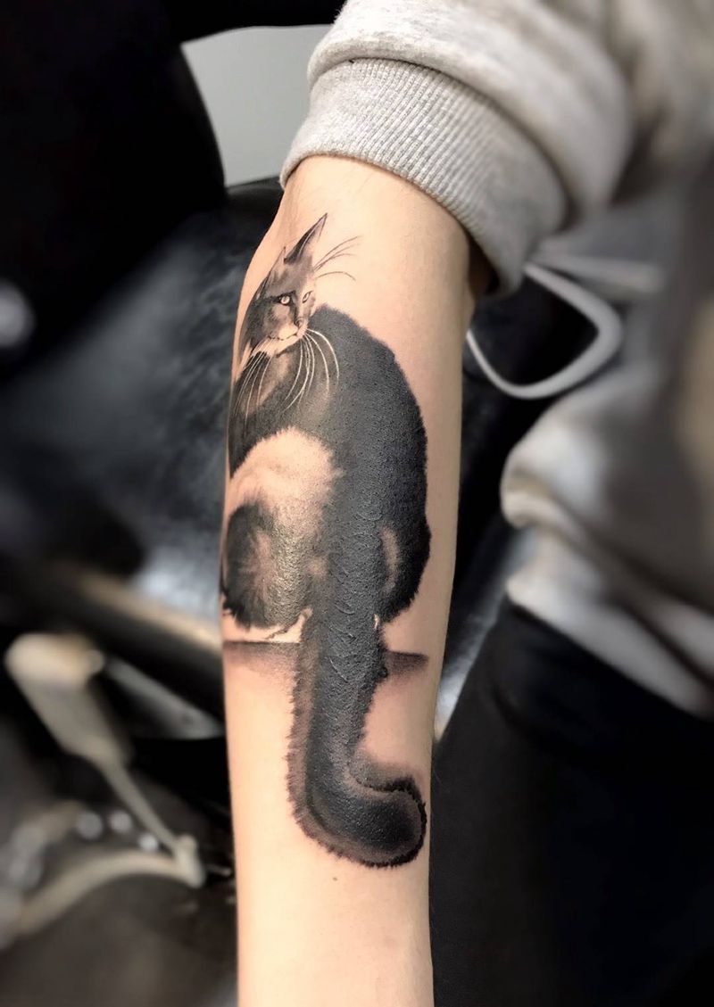 当前位置: 首页 >山东省济南市纹身店-烈火堂纹身纹身图案>猫纹身图片_手臂水墨纹身图案