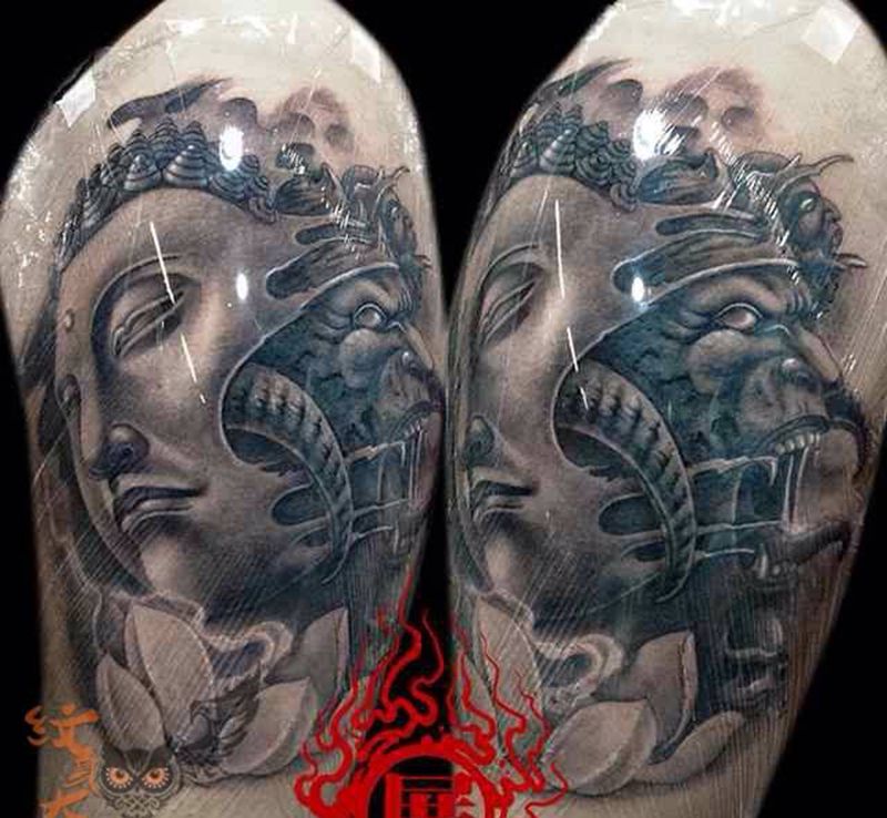 当前位置: 首页 >山东省济南市纹身店-烈火堂纹身纹身图案>佛与魔纹身图片