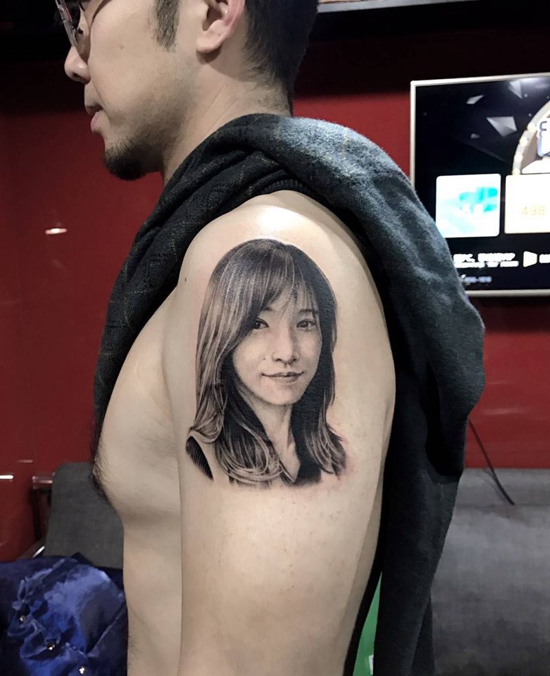 当前位置: 首页 >山东省济南市纹身店-烈火堂纹身纹身图案>人物肖像纹身图片_肩部手臂欧美写实纹身图案