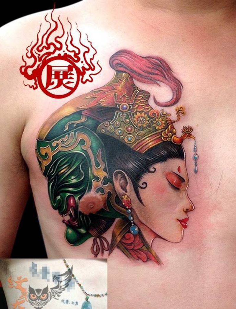 • 男性大花胸_42张优秀的男性大花胸纹身图案图片