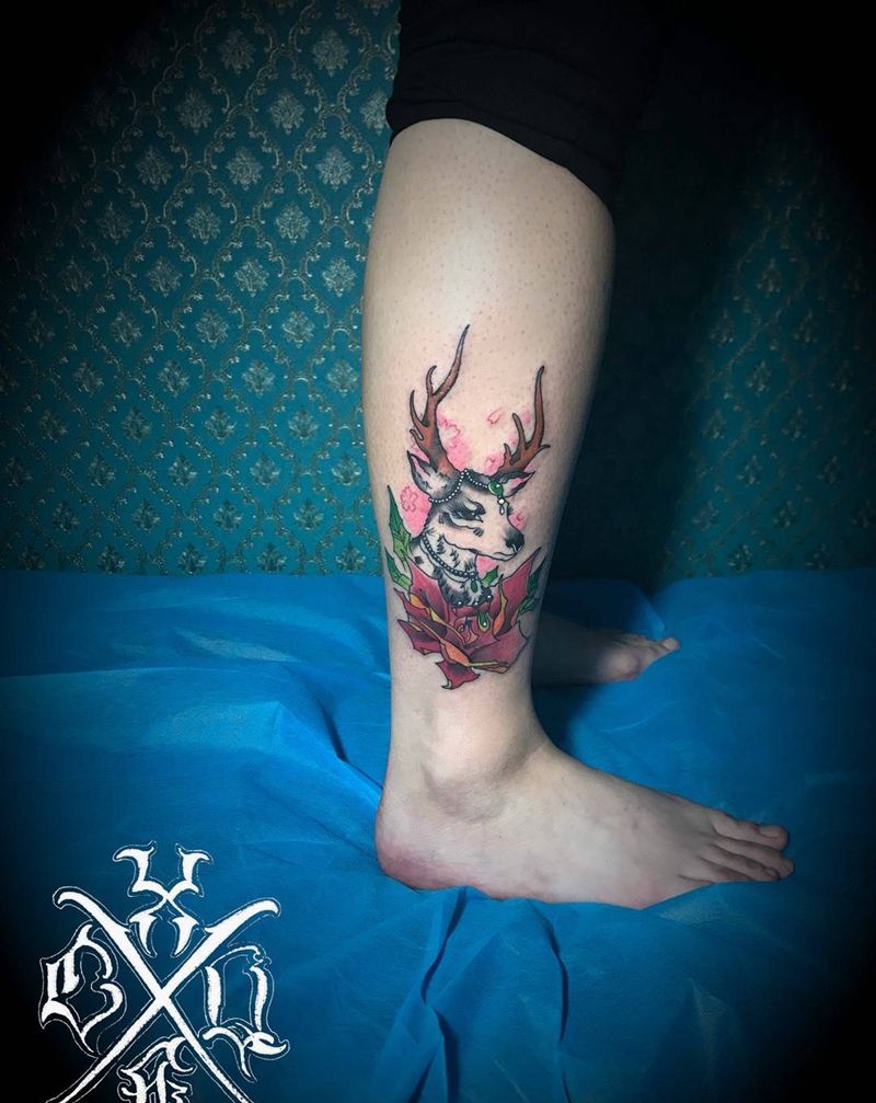 • T网红王老大花腿龙纹身图片_腿部新传统纹身图案