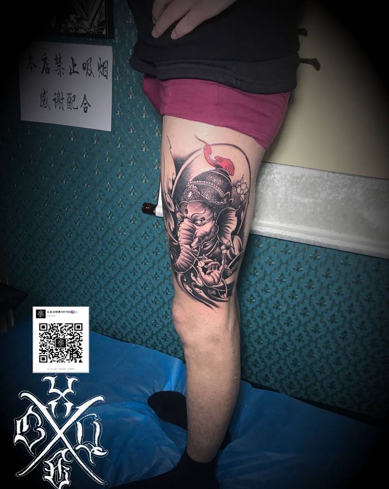 • T网红王老大花腿龙纹身图片_腿部新传统纹身图案