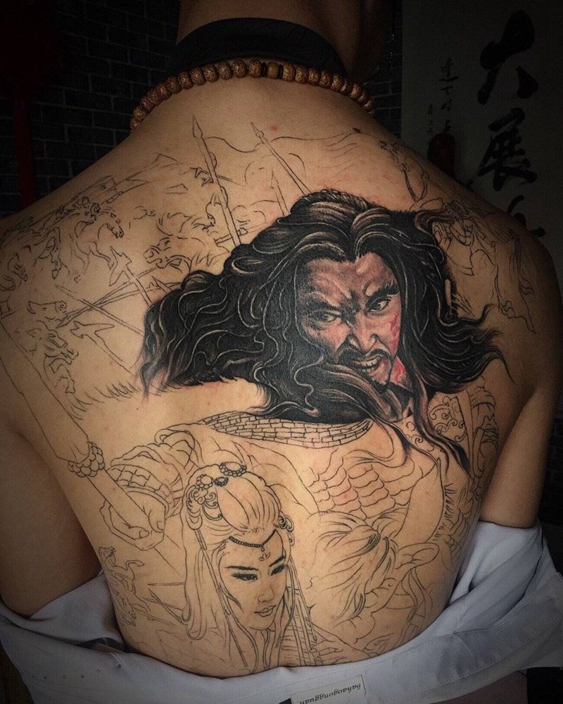 西楚霸王项羽纹身图片_背部新传统纹身图案