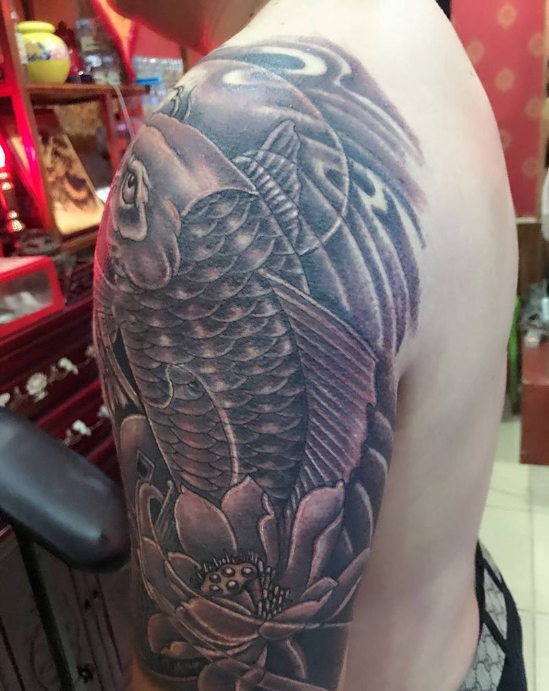 当前位置: 首页 >山东省济南市纹身店-皇室纹身纹身图案>招财锦鲤纹身图片