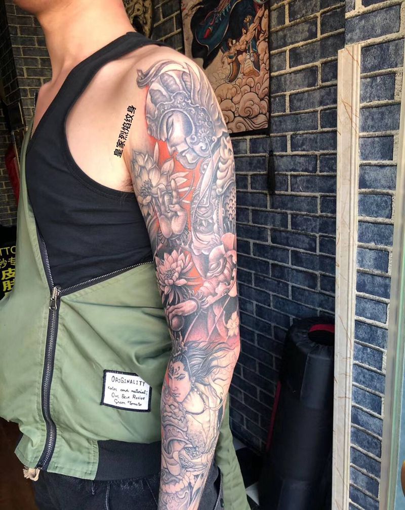 当前位置: 首页 >山东省济南市纹身店-济南皇家烈焰刺青纹身图案>韦陀菩萨二郎神花臂未完成纹身图片_手臂新传统天神纹身图案