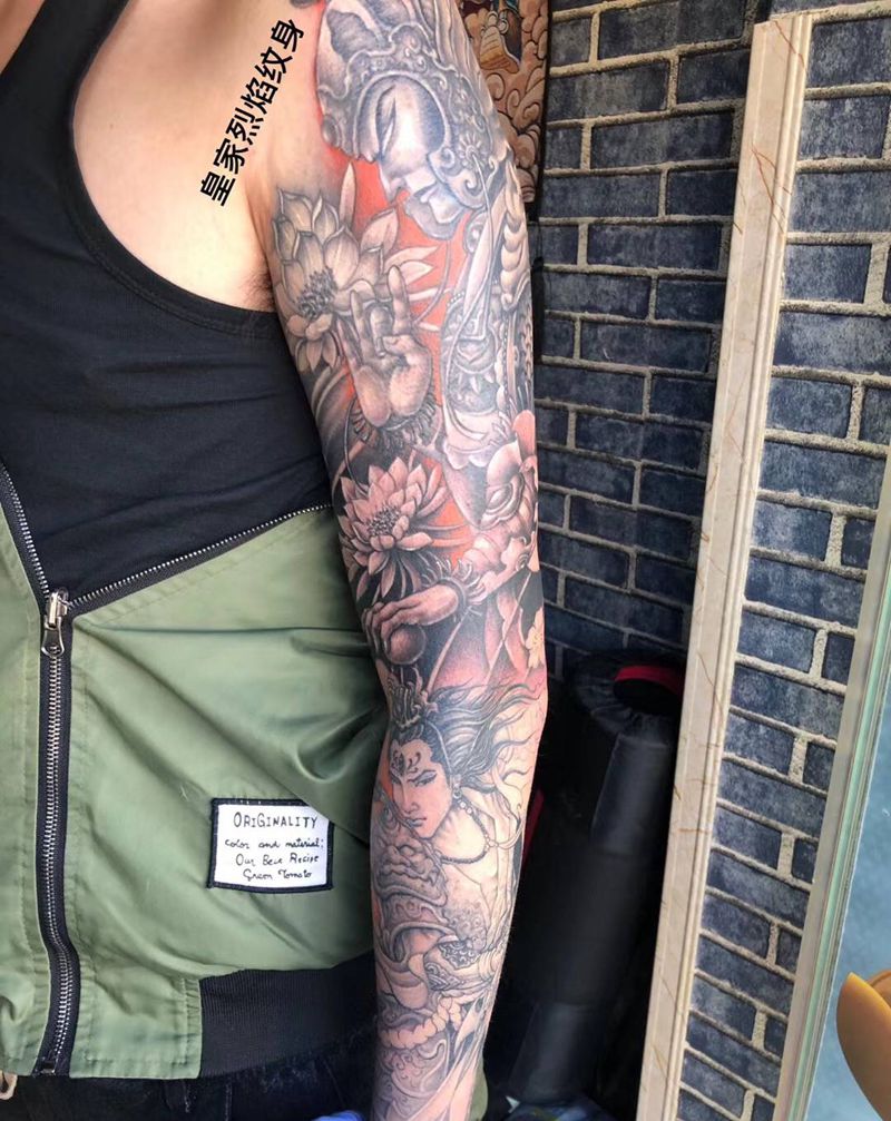 当前位置: 首页 >山东省济南市纹身店-济南皇家烈焰刺青纹身图案>韦陀菩萨二郎神花臂未完成纹身图片_手臂新传统天神纹身图案
