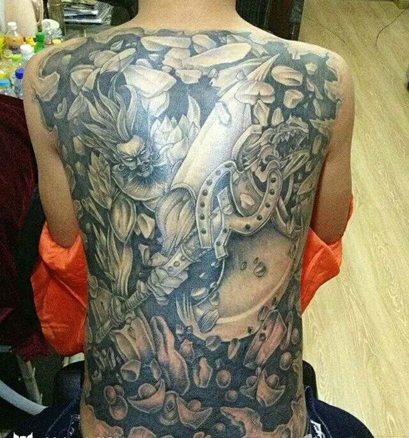黑灰满背纹身图案