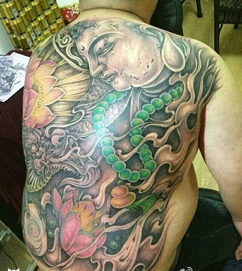 当前位置: 首页 >山东省济南市纹身店-济南皇家烈焰刺青纹身图案>龙回首向佛纹身图片