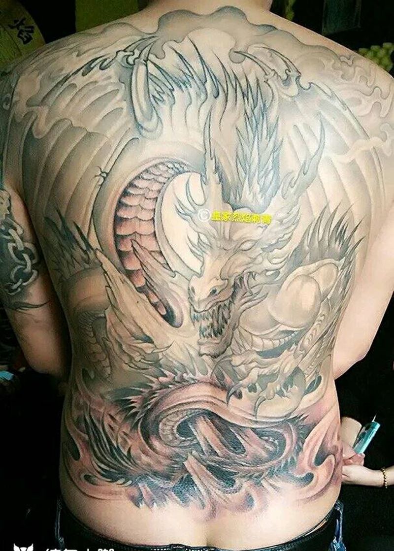 黑灰满背纹身图案