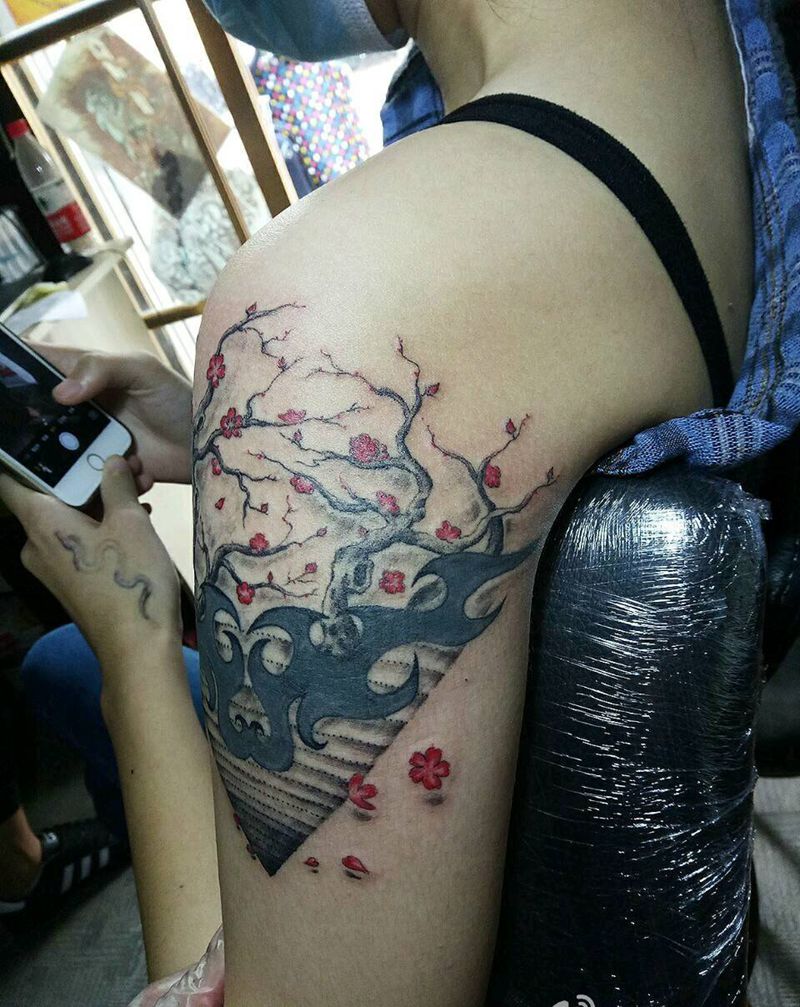 • 纹身吧推荐的披肩图腾半胛纹身图案作品展示
