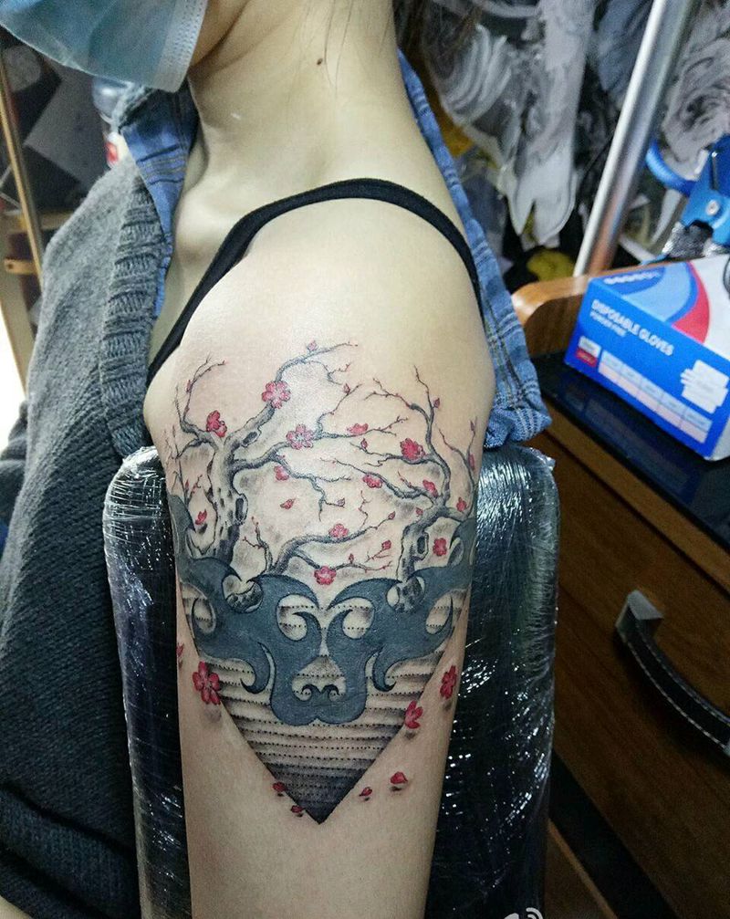 • 纹身吧推荐的披肩图腾半胛纹身图案作品展示