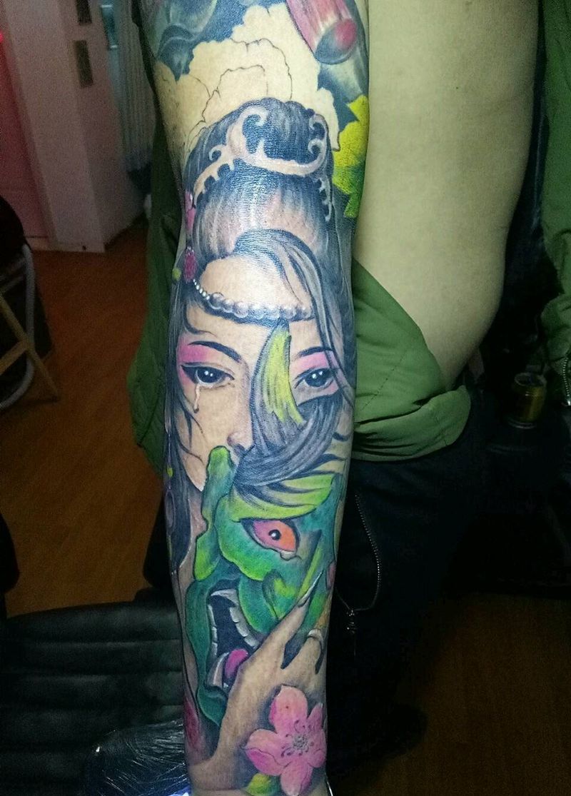 一组15张莲花纹身手