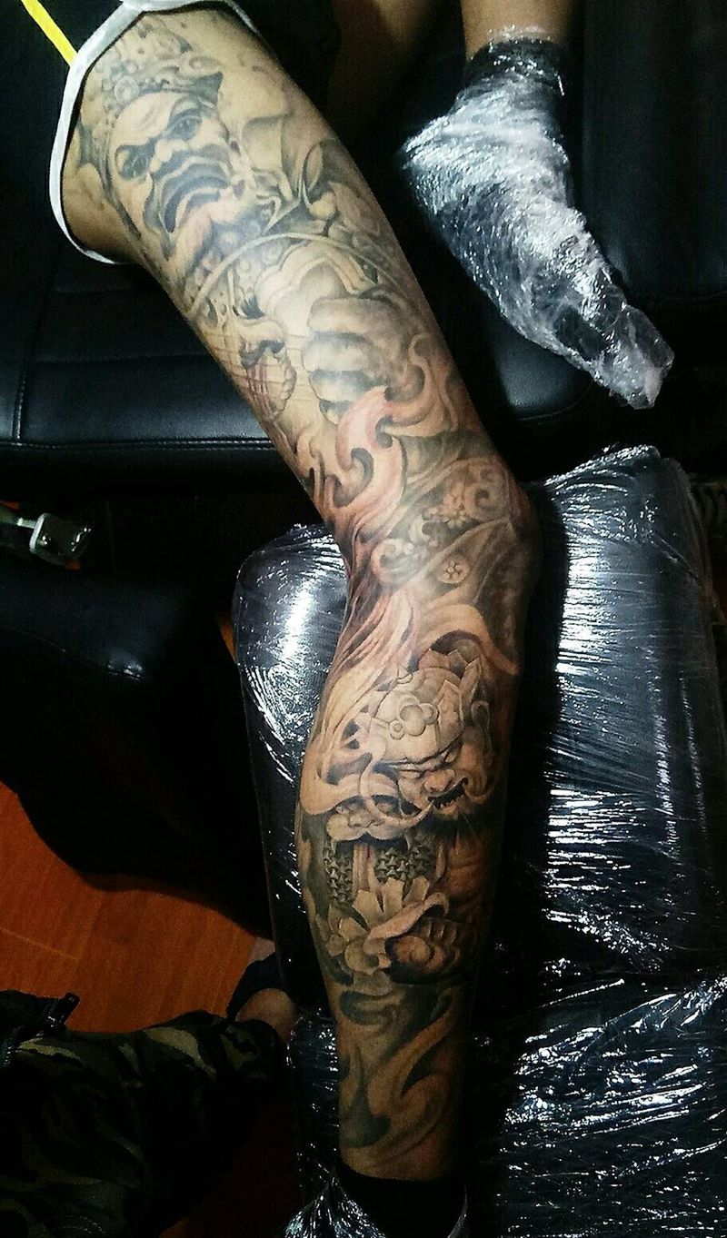 当前位置: 首页 >山东省济南市纹身店-济南皇家烈焰刺青纹身图案>四大天王花腿纹身图片