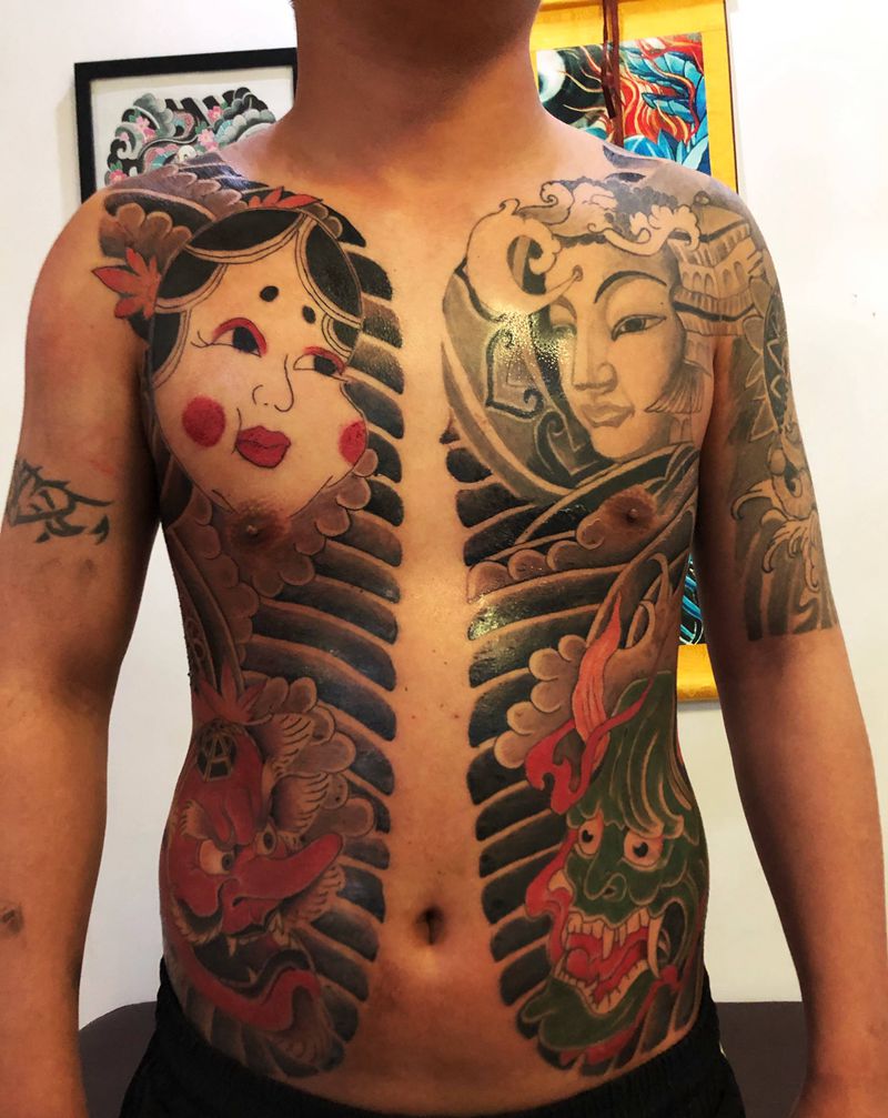 当前位置: 首页 >山东省济南市纹身店-三和刺青纹身图案>老传统 开衫纹身图片_胸部腹部老传统纹身图案