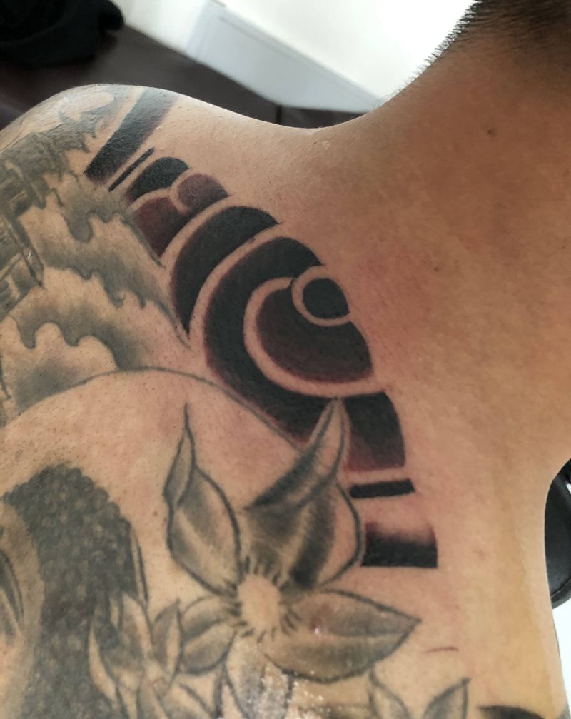 • 纹身吧推荐的披肩图腾半胛纹身图案作品展示