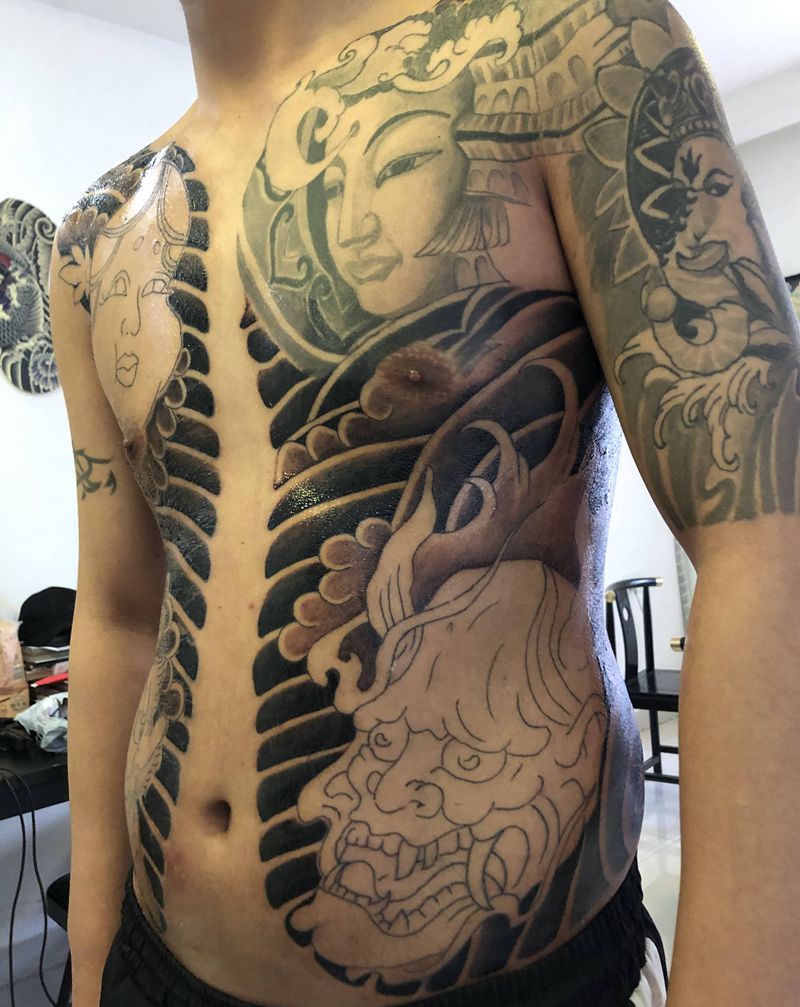 开衫未完纹身图片_胸部腹部老传统纹身图案