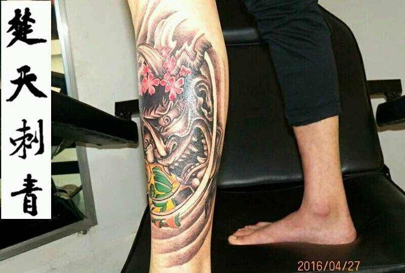 • T网红王老大花腿龙纹身图片_腿部新传统纹身图案