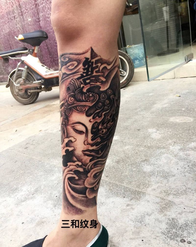 当前位置: 首页 >山东省济南市纹身店-三和刺青纹身图案>包小腿,一次完成纹身图片