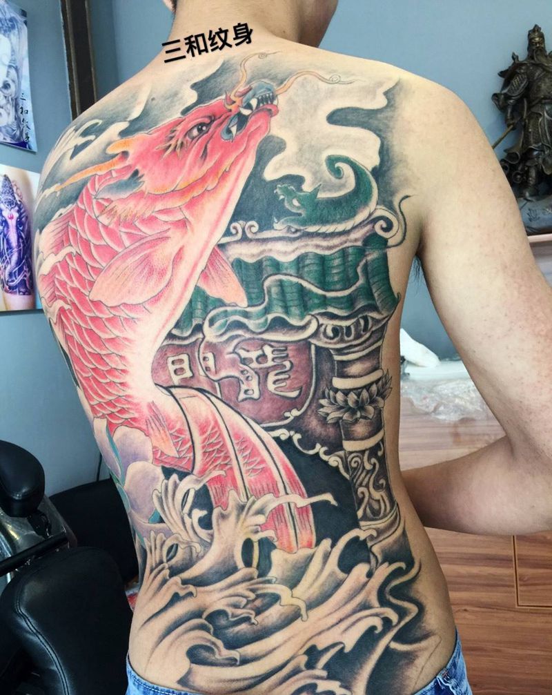 满背鳌鱼纹身图片