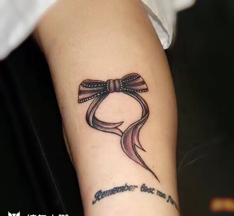 小作 蝴蝶结纹身图片_腿部新传统老传统纹身图案