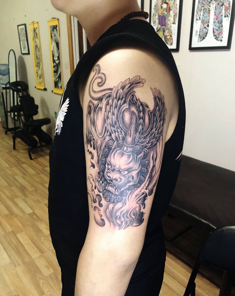貔貅貔貅纹身图片_肩部手臂新传统老传统纹身图案