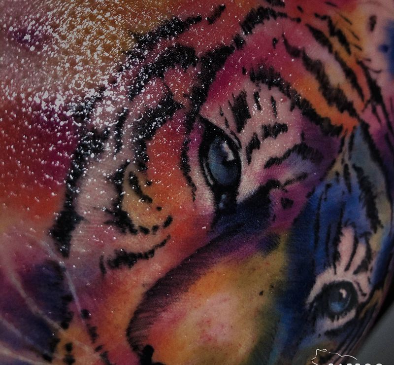 当前位置: 首页 >山东省济南市纹身店-纹豪刺青纹身图案>大老虎纹身图片_胸部水彩纹身图案
