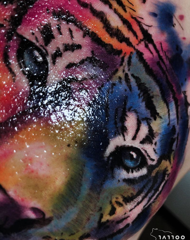 当前位置: 首页 >山东省济南市纹身店-纹豪刺青纹身图案>大老虎纹身图片_胸部水彩纹身图案