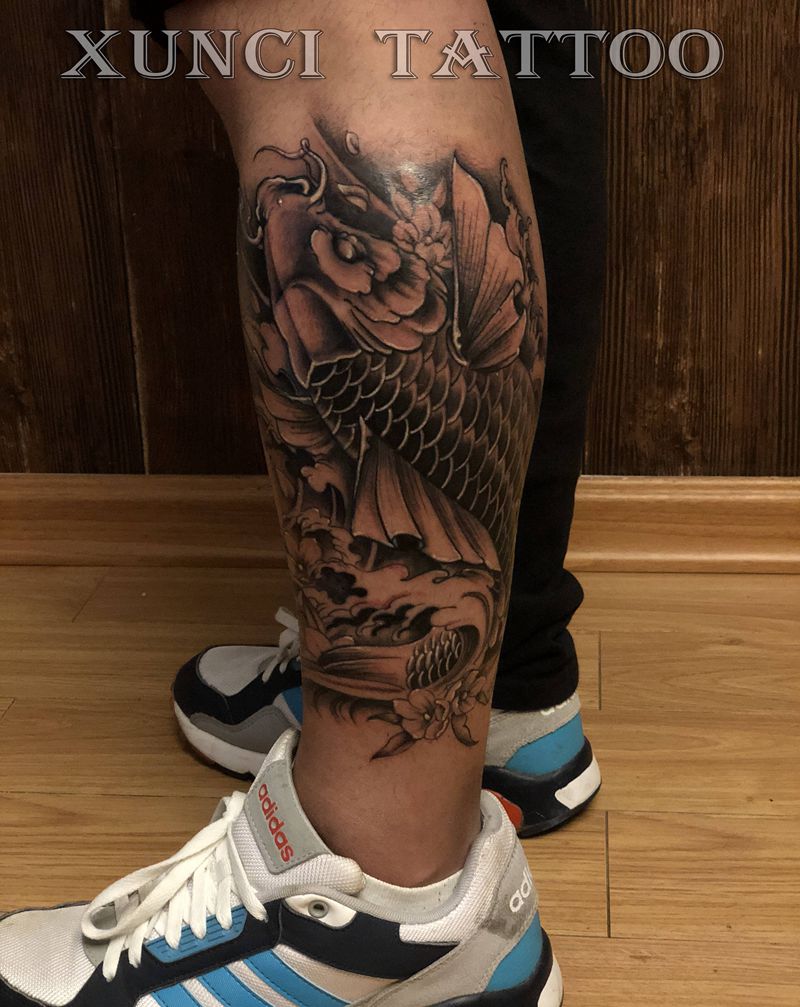 当前位置: 首页 >山东省济南市纹身店-倧玥刺青纹身图案>鲤鱼纹身图片_腿部老传统纹身图案