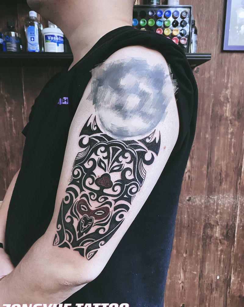 • 纹身吧推荐的披肩图腾半胛纹身图案作品展示