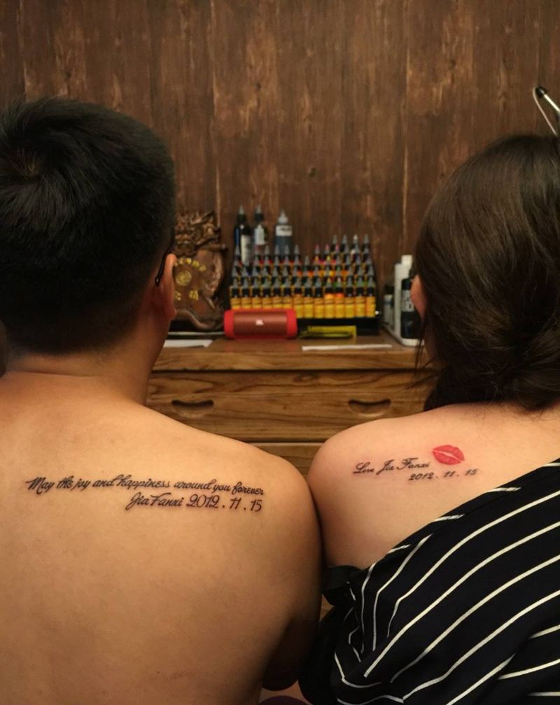 当前位置: 首页 >山东省济南市纹身店-倧玥刺青纹身图案>情侣字母纹身图片_成品肩部背部字符清新情侣原创纹身图案