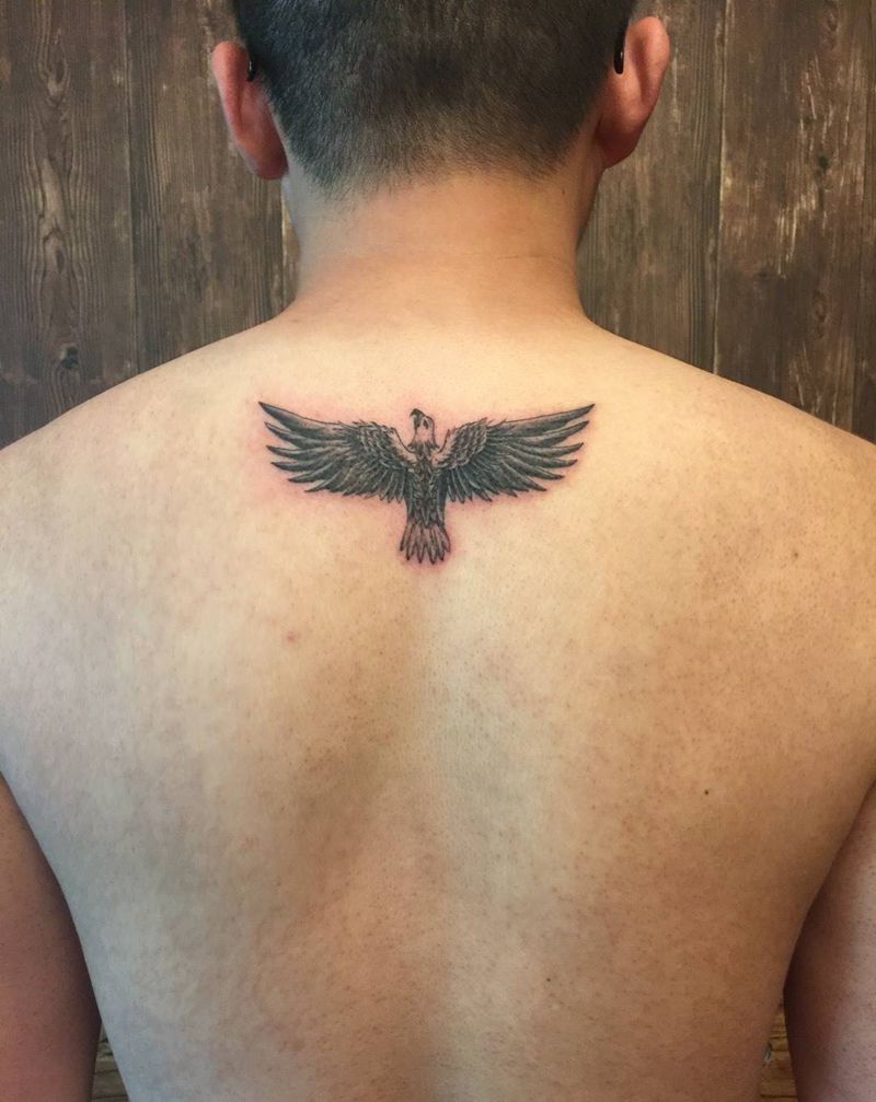 鹰纹身图片_成品背部传统写实动物原创纹身图案
