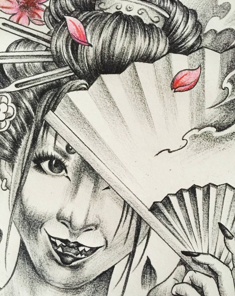 艺妓纹身图片_手稿胸部背部手臂腿部传统写实肖像人物鬼神纹身图案